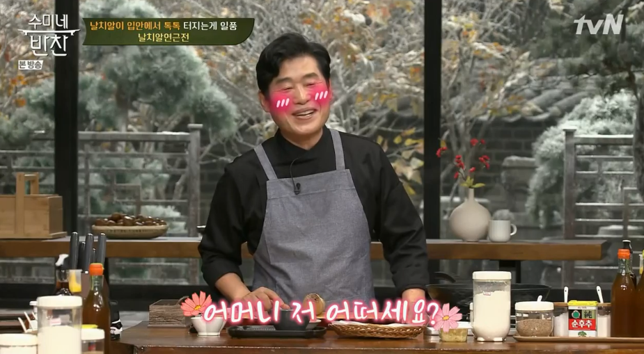 수미쌤은 늘 며느리에게 날치알 연근전을 보내주신 다는 말에 연복 제자가 수미쌤 며느리가 되고 싶다고..ㅎ